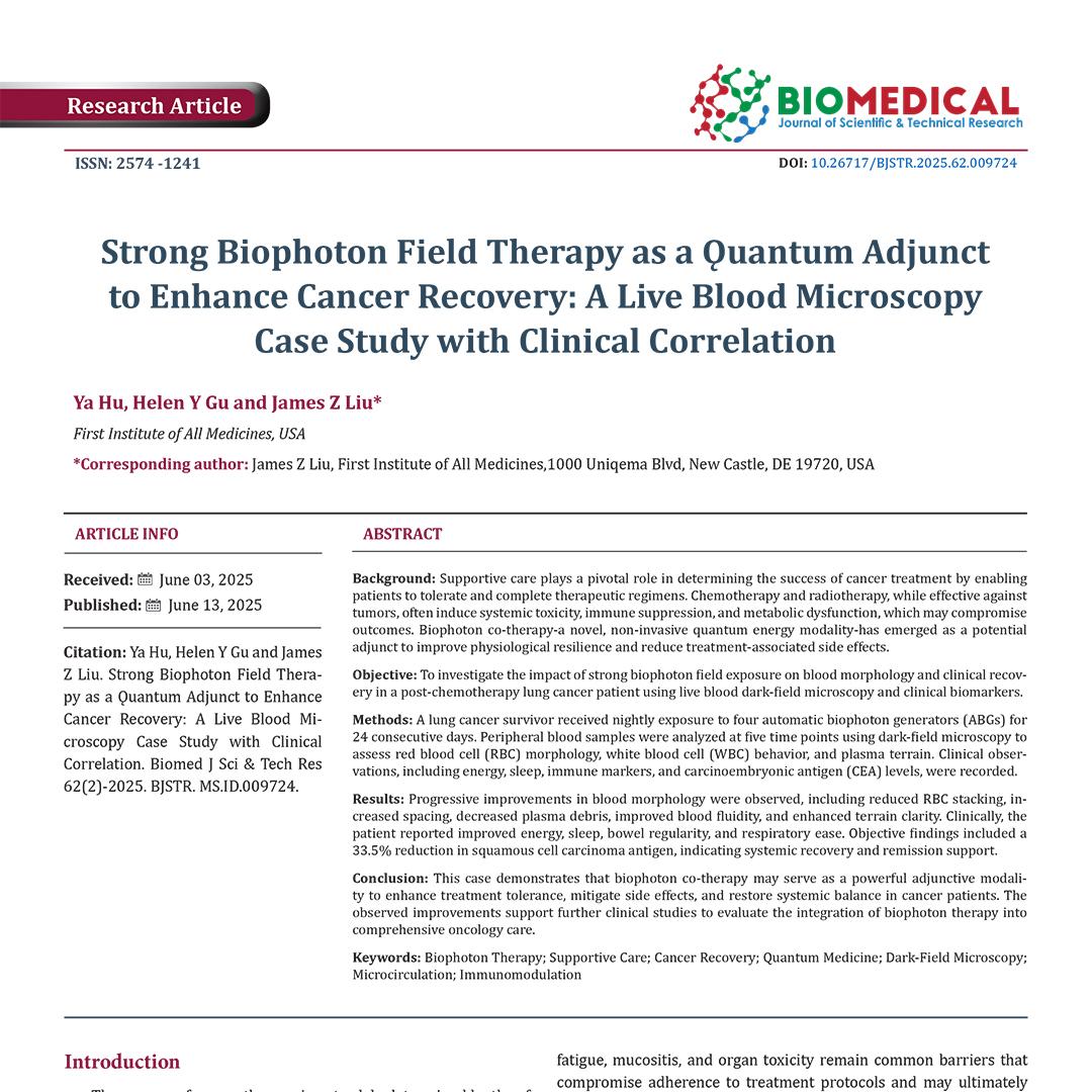 Strong Biophoton Field Therapy as a Quantum Adjunct to Enhance Cancer Recovery: A Live Blood Microscopy Case Study with Clinical Correlation